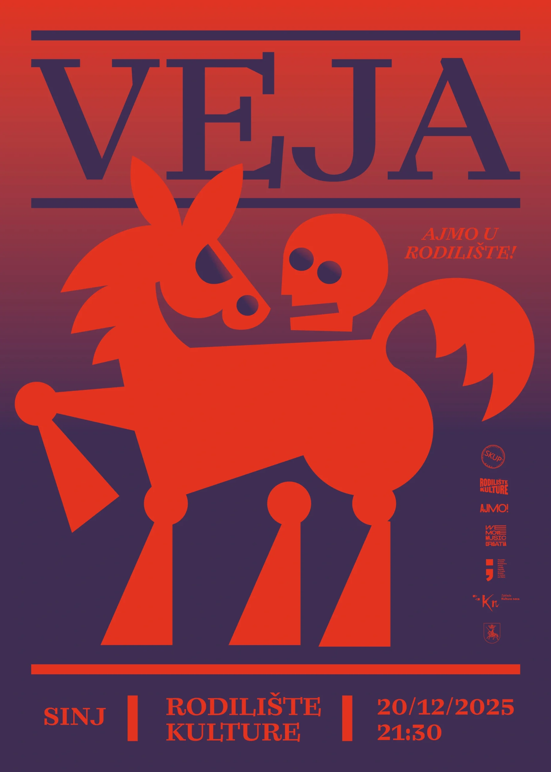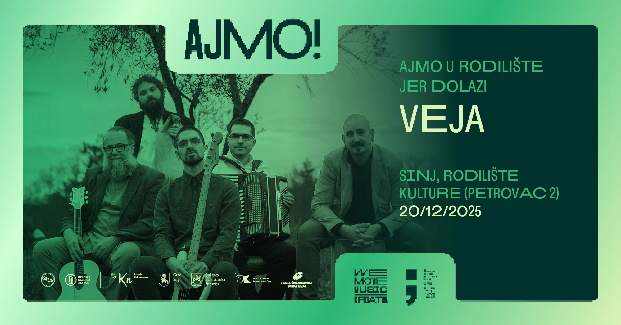 Jedan od najznačajnijih hrvatskih world music bendova – Veja, 20. prosinca 2025. nastupit će u sinjskom Rodilištu kulture (Sinj, Petrovac 2). Grupa Veja osnovana je 2007. u Pazinu, a tijekom svojih 15 godina rada postala je jedna od najznačajnijih hrvatskih etno/world music izvođača. Od početka svojeg rada Veja je inspiraciju pronašla u specifičnoj istarskoj tradicijskoj glazbi koju je odlučila izvoditi na moderan način.