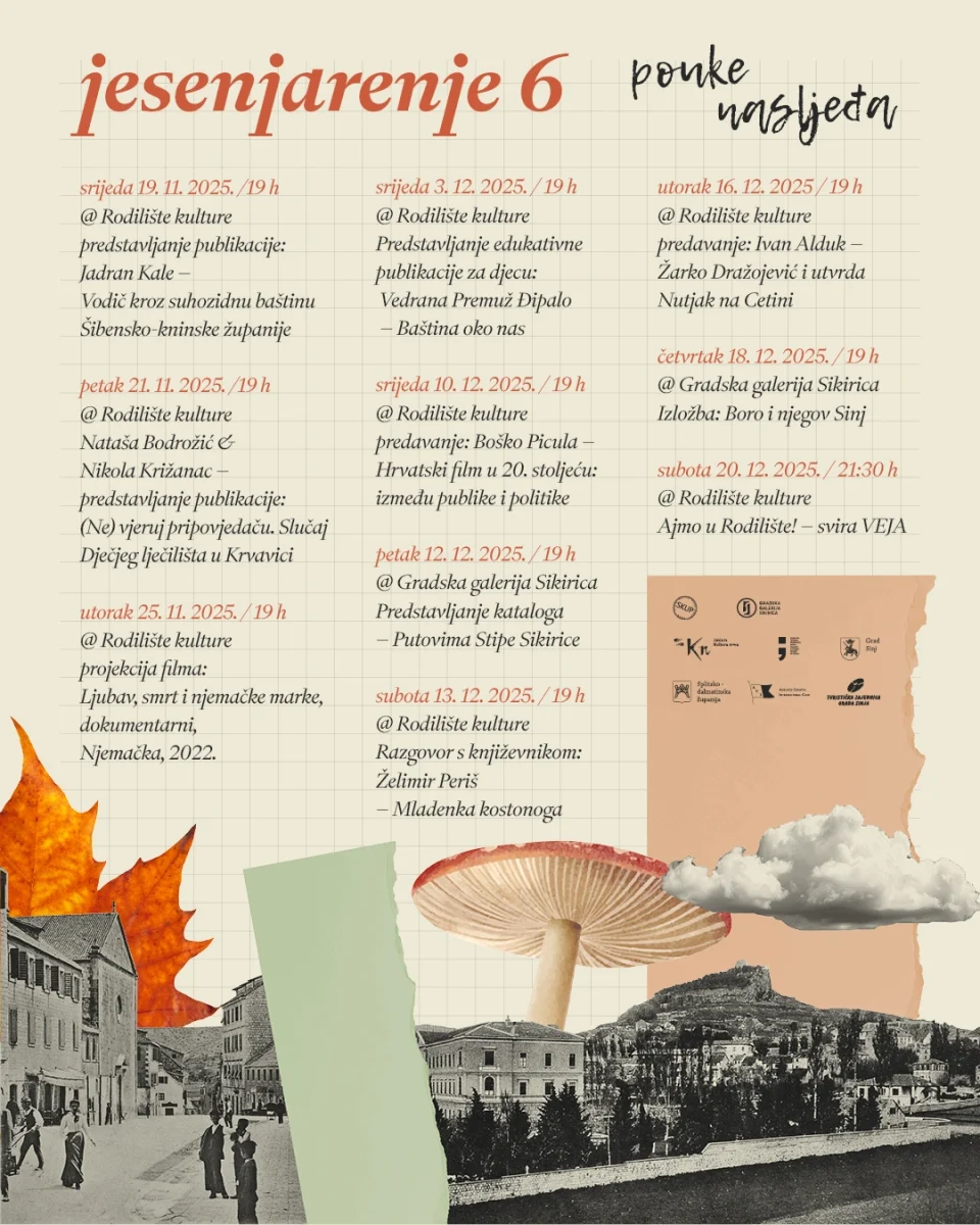 Ovogodišnje, šesto izdanje, objedinjeno temom “Pouke nasljeđa”, usmjerava pogled prema onome što baštinimo — kulturno-povijesnom, arhitektonskom i graditeljskom nasljeđu, ali i onom osobnom, prirodnom i društvenom. Kroz različite formate, od predstavljanja knjiga i predavanja do filmskih projekcija i izložbe, predstavljamo nasljeđe kao zajednički resurs koji oblikuje identitet prostora i zajednice, ali i kao poticaj za razumijevanje sadašnjosti te promišljanje budućnosti.